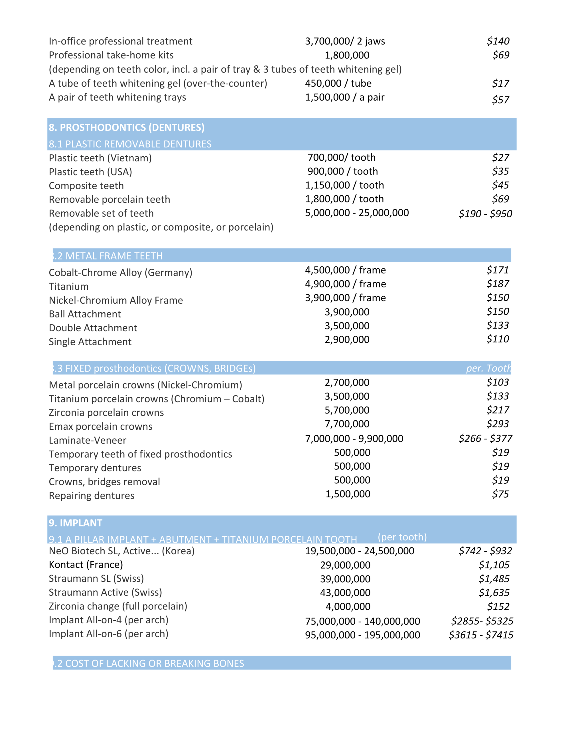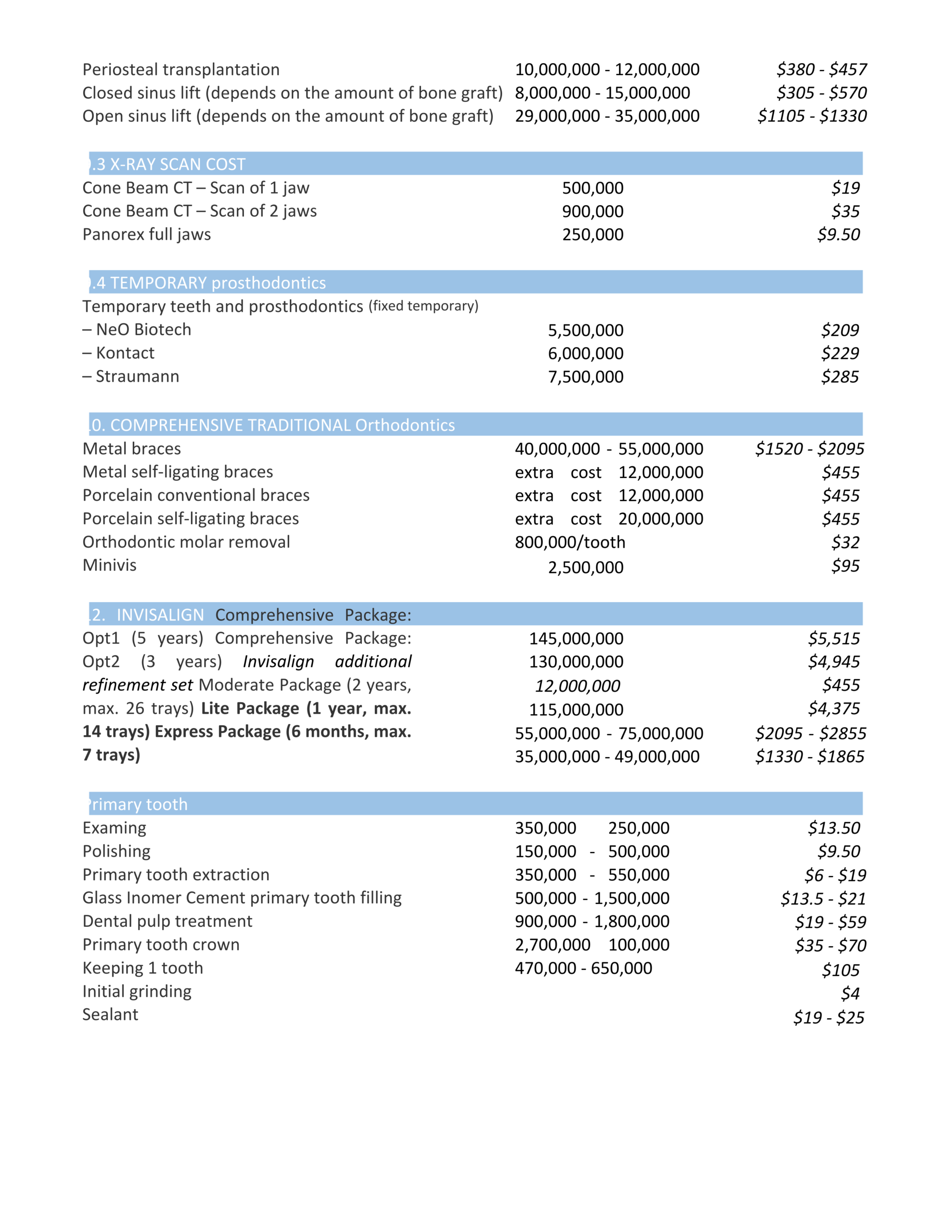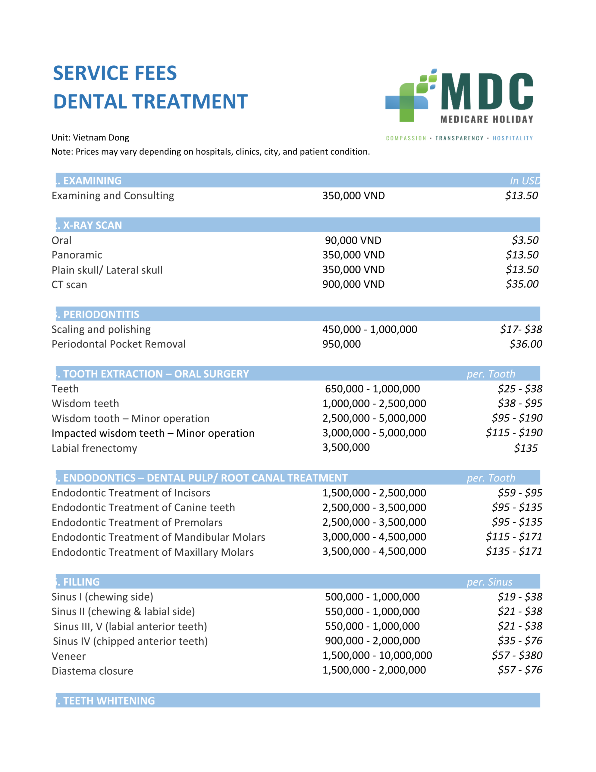 (*) Please be aware that prices may vary depending on hospital, city, and patient condition.